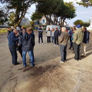 Il fait encore beau, le sol est sec, et tout le monde se retrouve, assis, allongé, pour apprendre, les différents gestes. François principalement, mais aussi Michel, expliquent la méthode. Cela va occuper une bonne partie de la fin de matinée.