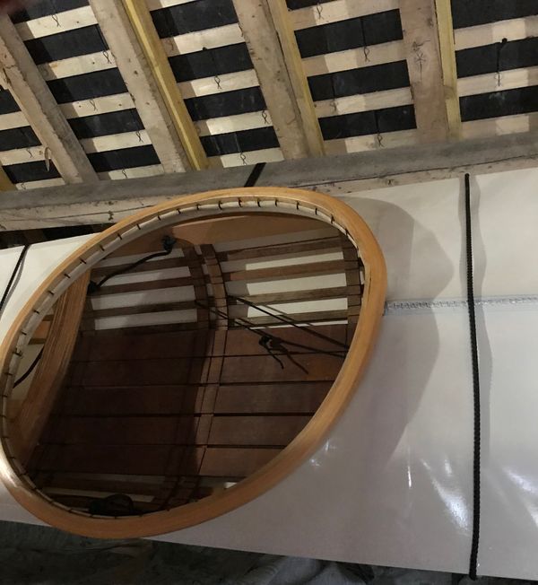 – Kayak Trad spécial Roll bois toile magnifiquement réalisé par Kerlo; état impeccable aussi; fournie avec pagaie groenlandaise faite par Alpine Paddle: 950euros